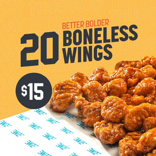 . This restaurant serves 6 wings side salad chili con queso dip buffalo chicken flatbread popcorn shrimp 50 boneless wings and medium. Chicken Wings in Charlottesville. Original or boneless tenders fries -- cooked to order really fast for delivery or to-go.